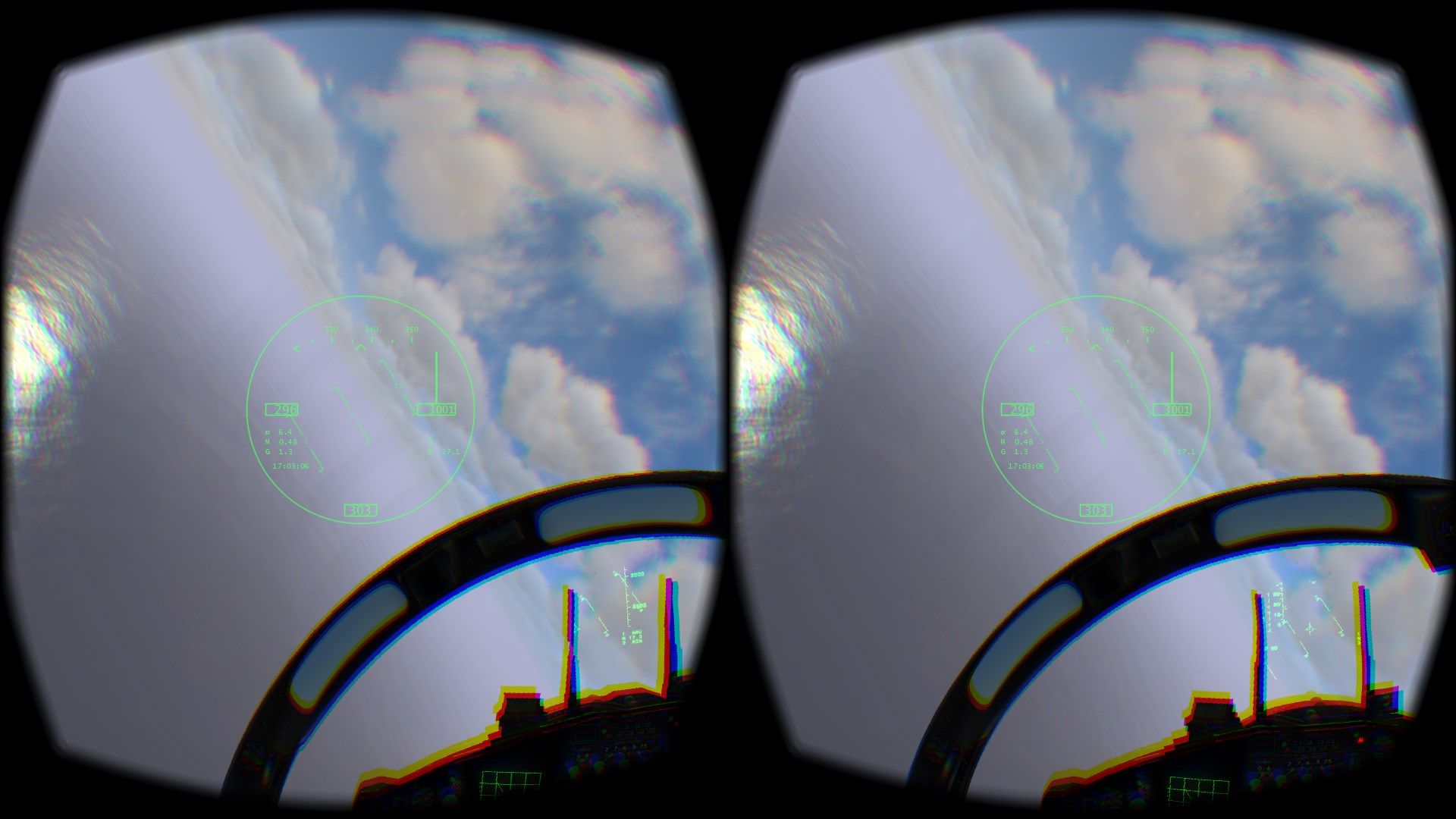 Die Software "projeziert" die wichtigsten Fluginformationen direkt in das Sichtfeld der Oculus Rift. Es befindet sich in einer ähnlichen Projektions-Entfernung wie das normale HUD.